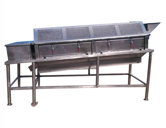 0371-666 99 708不銹鋼滾筒篩,包括臥式可轉(zhuǎn)動筒體和上密封蓋,其中筒體的頭部設(shè)有進料口,底部設(shè)有出料口,尾部設(shè)有排料口,上密封蓋設(shè)于筒體正上方,筒體傾斜安裝在托架上,并轉(zhuǎn)動支撐在兩側(cè)輥輪上,所述筒體由前向后至少分三段篩網(wǎng)逐級設(shè)置,各段篩網(wǎng)的網(wǎng)孔直徑由前至后為逐級變大,所述出料口有多個,各出料口分別與各段篩網(wǎng)相對應(yīng);所述滾筒篩各部分均采用不銹鋼材質(zhì)制成.本實用新型能夠分選效果好,分選過程更加順暢。