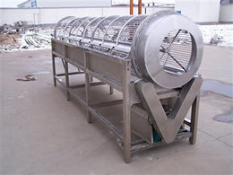 滾筒分級機又稱為鼠籠式分級機:除機架傳動部分,其余均為不銹鋼衛(wèi)生級304制作,篩網(wǎng)先沖孔,后經(jīng)機械卷圓處理,使之在使用過程中不傷害物料,篩網(wǎng)孔徑也可根據(jù)用戶要求設計制作,產(chǎn)品通過提升機輸送到分級機里面,由于傳動作用,滾筒在不停地運轉(zhuǎn),物料從小到大分級出來。可將原料分為3-10等級。大棗分級機使用范圍:本機適用于大棗、冬棗、小西紅柿、蒜米、山楂、桃子、胡蘿卜、桔子、香菇、土豆、洋蔥等分級使用,具有分級標準、效率高等優(yōu)點,配套調(diào)速電機及防撞墊,可根據(jù)品種調(diào)節(jié)速度減小撞擊力,保障產(chǎn)品無破損。