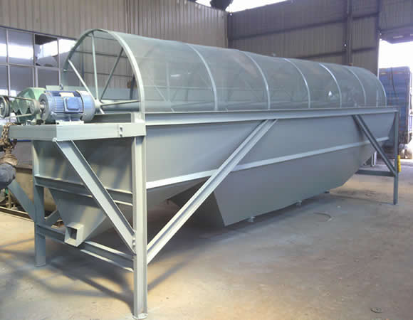 分級除雜滾筒篩: 滾筒篩整個(gè)設(shè)備有儲(chǔ)料倉、滾筒篩分機(jī)和皮帶輸送機(jī)組成。物料由裝載機(jī)裝入儲(chǔ)料倉,然后進(jìn)入滾筒篩,旋轉(zhuǎn)的篩筒帶動(dòng)物料在篩筒內(nèi)翻滾,從一端向另一端移動(dòng),小于設(shè)定(網(wǎng)眼)的物料由篩網(wǎng)漏出進(jìn)入皮帶機(jī),然后由皮帶輸送機(jī)匯集從另一端卸出,大于網(wǎng)眼的廢料部分從篩網(wǎng)另一端排出,整個(gè)過程連續(xù),物料分級準(zhǔn)確,滾筒篩由電機(jī)、減速機(jī)、驅(qū)動(dòng)聯(lián)軸器、軸承支座和篩籠等組成。