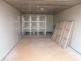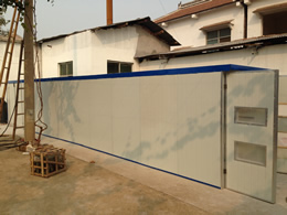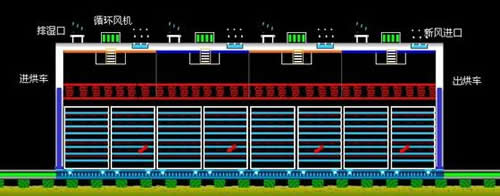 該干燥設(shè)備采用的是連續(xù)性烘干作業(yè),主要有干燥室、烘干車、料盤、供風(fēng)系統(tǒng)、熱風(fēng)爐、自動電控系統(tǒng)等構(gòu)成。干燥室采用金屬保溫板或磚混結(jié)構(gòu),烘干盤采用金屬或其他材料制作。