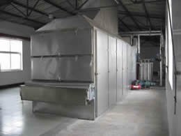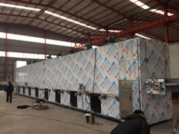 因此采用多段組合能更好地發(fā)揮網(wǎng)帶式熱風(fēng)烘干機的性能,且干燥更均勻,并能使產(chǎn)量成倍提高,為用戶大批量的生產(chǎn)、取得經(jīng)濟效益提供了可靠的保障。