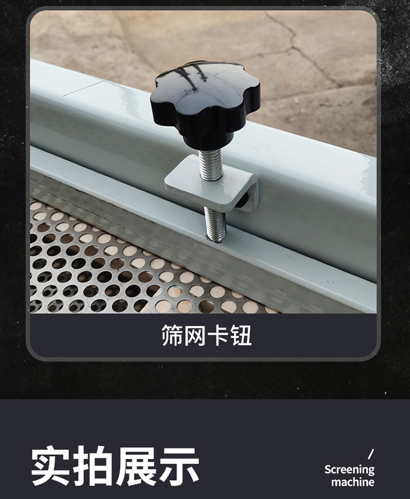 2、振動(dòng)篩選機(jī)可選用220V-2.2kw或380V-1.5kw電機(jī)做動(dòng)力源,集風(fēng)選和篩分為一體,能干凈徹底地清除糧食或油料種子里面的各種雜質(zhì)和塵土,振動(dòng)分選機(jī)由料斗、機(jī)架、傳動(dòng)機(jī)構(gòu)、風(fēng)機(jī)、風(fēng)道等五部分組成,機(jī)架地腳裝有四個(gè)輪子,方便移動(dòng);篩網(wǎng)與機(jī)架采用分體式結(jié)構(gòu),便于更換各種不同目數(shù)的網(wǎng)篩。