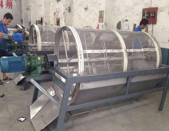 我公司研制的滾筒篩進料口可根據(jù)現(xiàn)場實際設(shè)計,無論是皮帶、漏斗或其它進料方式,不用采取特殊,不銹鋼滾筒篩廣泛應(yīng)用于各類物料篩分,無論是劣質(zhì)煤、煤泥,還是煤煙以及其它類物料,都是順利進行篩分。設(shè)備可設(shè)有梳型清篩機構(gòu),在篩分過程中,不管進入篩分筒的物料多臟、多雜都可以篩分,從而提高了設(shè)備的篩分效率。