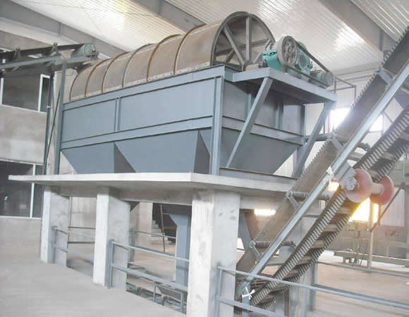分級除雜滾筒篩: 滾筒篩整個(gè)設(shè)備有儲(chǔ)料倉、滾筒篩分機(jī)和皮帶輸送機(jī)組成。物料由裝載機(jī)裝入儲(chǔ)料倉,然后進(jìn)入滾筒篩,旋轉(zhuǎn)的篩筒帶動(dòng)物料在篩筒內(nèi)翻滾,從一端向另一端移動(dòng),小于設(shè)定(網(wǎng)眼)的物料由篩網(wǎng)漏出進(jìn)入皮帶機(jī),然后由皮帶輸送機(jī)匯集從另一端卸出,大于網(wǎng)眼的廢料部分從篩網(wǎng)另一端排出,整個(gè)過程連續(xù),物料分級準(zhǔn)確,滾筒篩由電機(jī)、減速機(jī)、驅(qū)動(dòng)聯(lián)軸器、軸承支座和篩籠等組成。