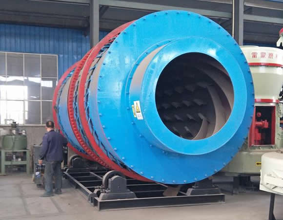 該機的外部表面積比單筒回轉式烘干機減少30%以上,并且外筒對內筒有保溫隔熱作用,外筒表面溫度低,熱損失少,在節(jié)能的同時,大大改變了勞動環(huán)境和勞動條件。多種揚料板設計,角形揚料板與萬字揚料板的結合,使物料與熱煙氣交換,減少了烘干機筒內風洞產生的機理。物料初水分,終水分確保以0.5-1%以下,是水泥廠礦渣粉和干粉砂漿生產線等各種烘干工程理想產品。